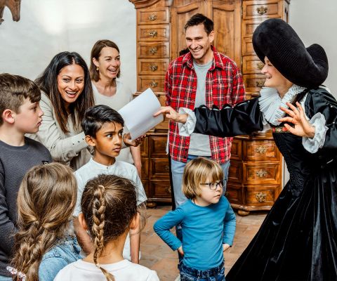 Auf dem einstündigen Rundgang wird die Burg zum Leben erweckt (Termine s. Veranstalterwebsite): Die Besucher reisen in vergangene Zeiten und begegnen Personen von früher und heute. Die Erlebnisführung für Familien versetzt kleine und grosse Besucher ins Staunen. Jede Menge «Ahs», «Ohs» und «Wows» werden den Kids auch im speziell gestalteten Raum für Kinder entlockt: Hier können sich die Sprösslinge verkleiden und gleich selber in die Rolle des tapferen Ritters oder der mutigen Prinzessin schlüpfen.