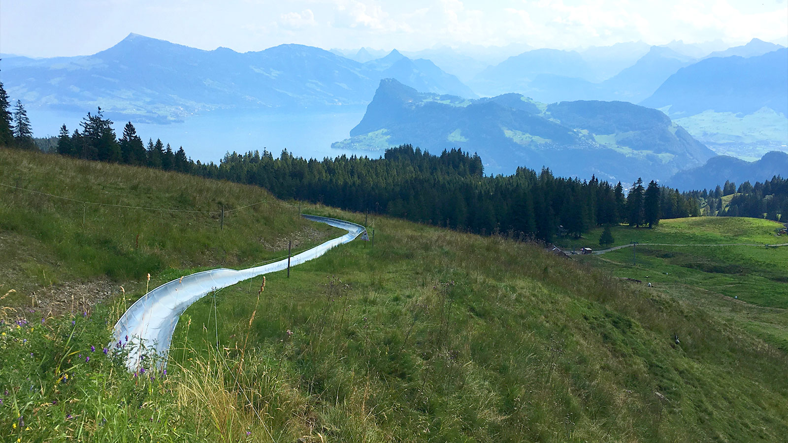 Die längste Rodelbahn der Schweiz liegt im Graubünden. Mehr als 3 km und 31 Steilkurven umfasst die Rodelbahn Pradaschier in Churwalden. Eine Fahrt dauert sieben bis zehn Minuten, ihr könnt dabei Spitzengeschwindigkeiten von 40 km/h erreichen. Wenn euch das zu schnell geht, könnt ihr die Geschwindigkeit mithilfe eines Bremshebels regulieren.