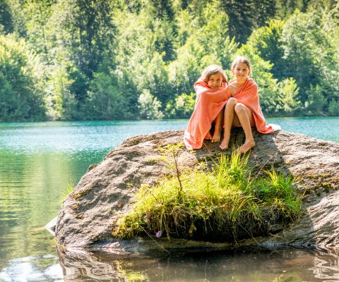 On peut non seulement s’y baigner, mais aussi s’y promener: la balade de quatre kilomètres autour de ce légendaire lac aux eaux sombres dure environ une heure. Si le cœur vous en dit, vous pouvez également faire un détour par la plage naturelle de Staldenmotta. Selon la légende, un géant s’y serait lavé les pieds, ce qui aurait rendu l’eau noire. Cette plage sauvage dépourvue de toute infrastructure est située à une dizaine de minutes de Gypsera, où se trouve une autre plage équipée, elle, de toutes les commodités. Un «chemin des sorcières» pour les enfants rendra l’expérience encore plus captivante. L’eau est agréablement fraîche, car le lac se situe à un peu plus de 1047 mètres d’altitude.