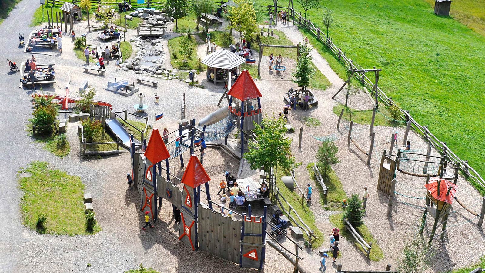 Par une belle journée d’été, la place de jeux de Cioss Prato dans le Val Bedretto est une destination d’excursion idéale pour les familles. Un peu plus frais qu’en plaine, cet endroit est situé dans un écrin de verdure et offre de fantastiques possibilités de jeux pour les petits avides de découverte. On remarque immédiatement les petites tours et leurs toboggans ainsi que les filets d’escalade, le tout dans l’esprit d’Harry Potter. Quel bonheur ce serait de vivre ici! Et quand vos bambins seront fatigués de glisser et d’escalader, ils pourront descendre à toute allure sur la tyrolienne ou s’en donner à cœur joie dans le bac à sable avec la grue et le toboggan à billes sur eau, l’attraction majeure pour les enfants. Juste à côté se trouve le restaurant libre-service avec terrasse, d’où les parents pourront surveiller la place de jeux.