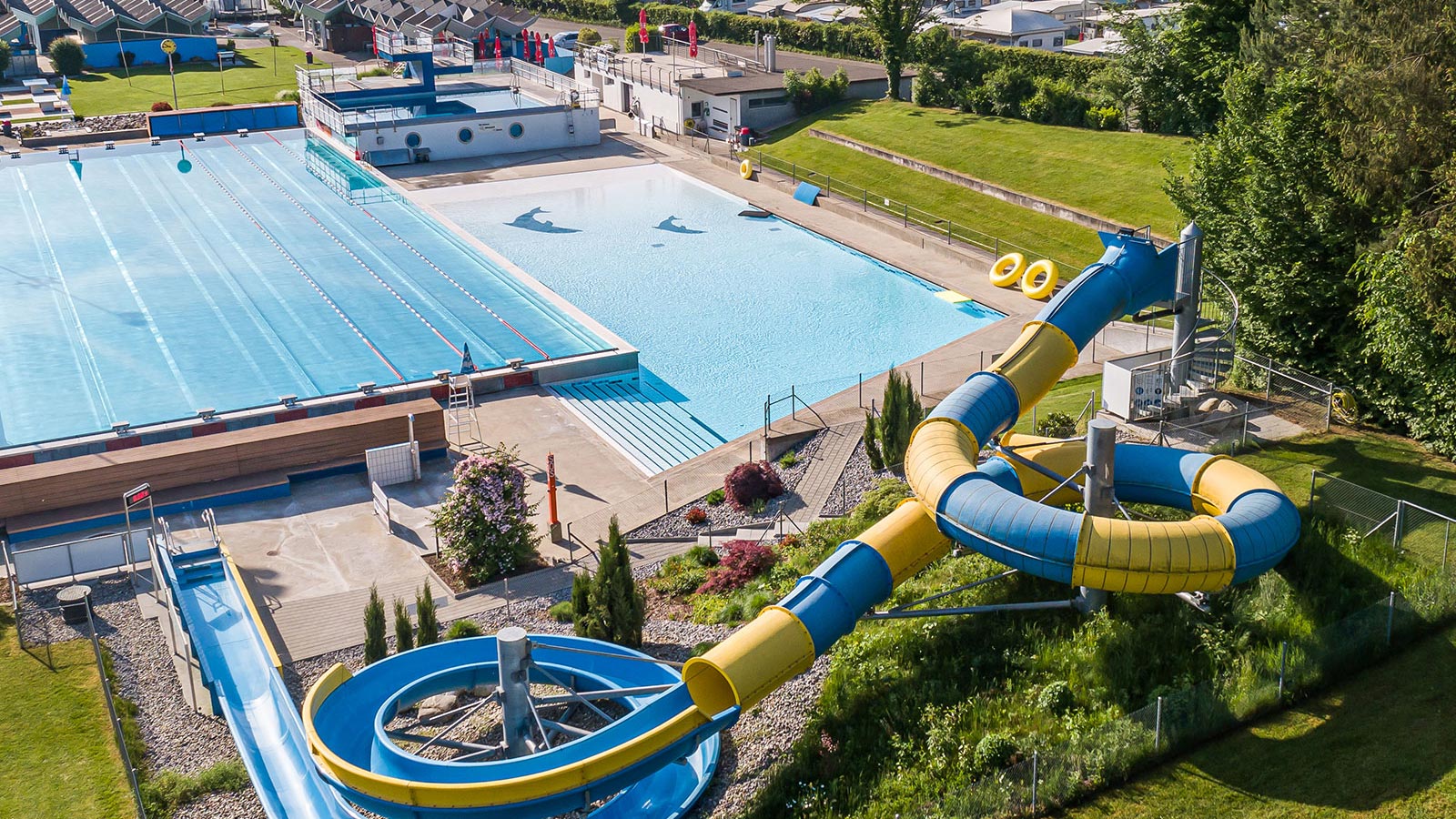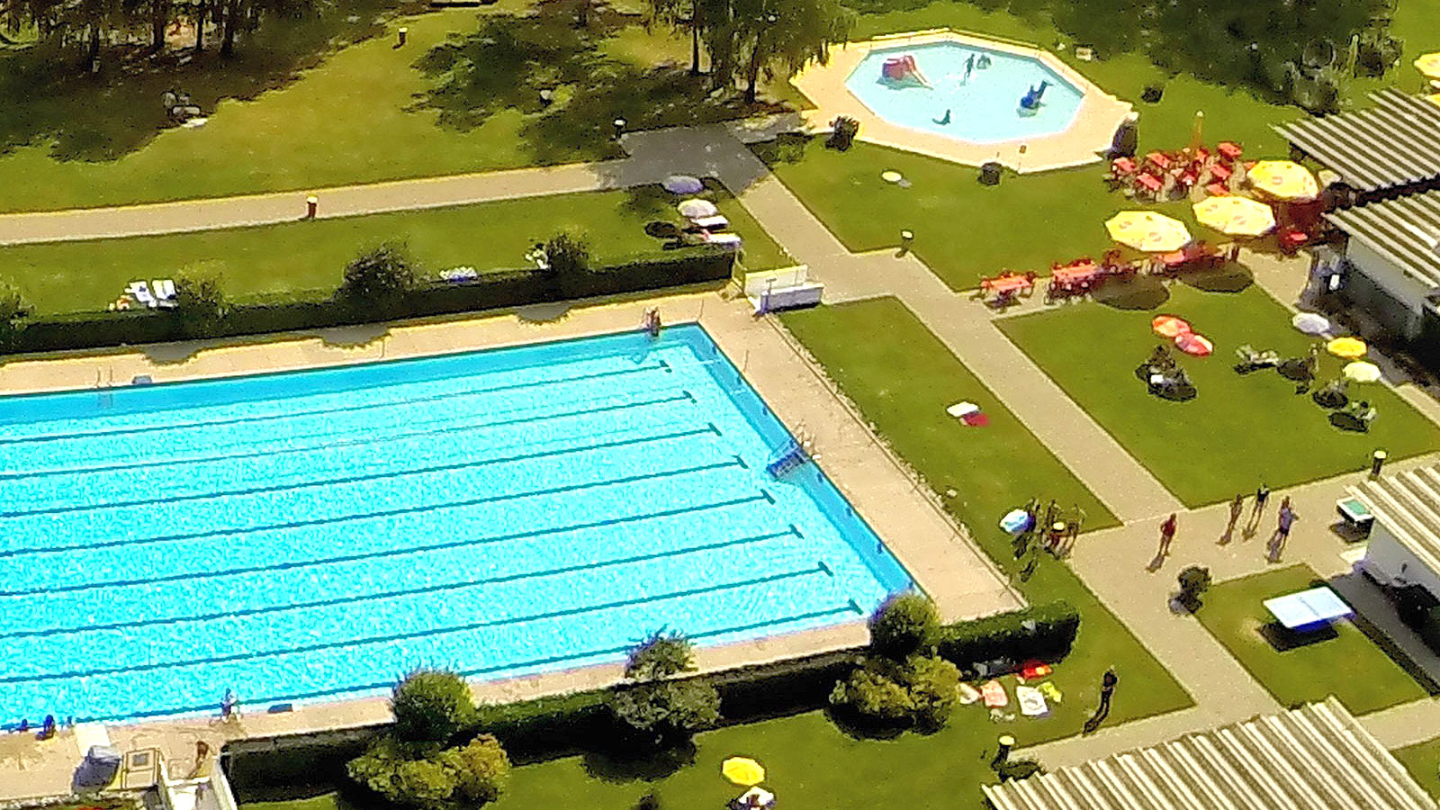 Attrattiva: gli ampi prati di questa piscina spaziosa invitano a trascorre una giornata di bagni e refrigerio. Mentre i più piccoli sguazzano nella mini-piscina, i più grandi si scatenano nella vasca per chi non sa ancora nuotare, nel parco giochi o sullo scivolo.
